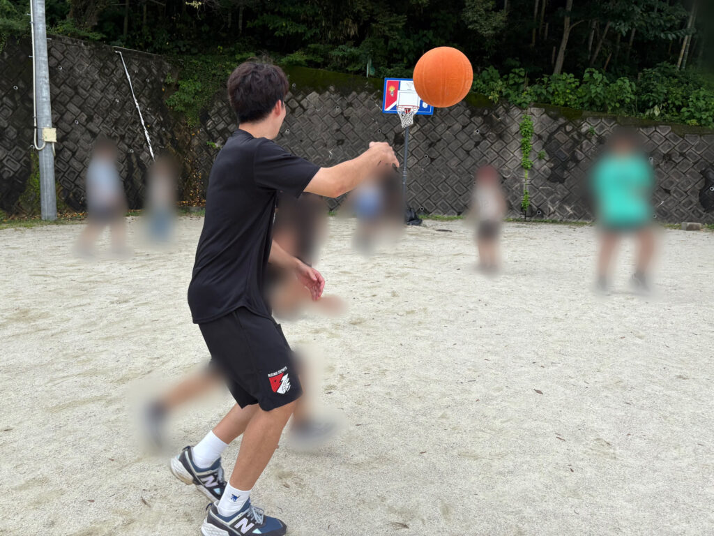 子ども達と一緒にドリブルやシュートを楽しんだほか、2チームに分かれて試合形式でバスケットをプレーし大盛り上がりでした。